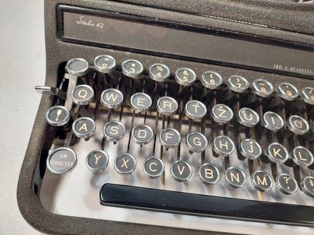 studio 42 schreibmaschine, entworfen von xanti (alexander) schawinski, einem basler architekten, grafiker, schauspieler und fotografen, der am bauhaus in weimar und dessau als schüler und später assistent von walter gropius tätig war.