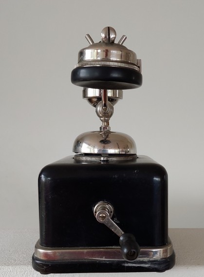 tisch-telefon ohne eigene wählscheibe,mit kurbel zum verbindungsaufbau