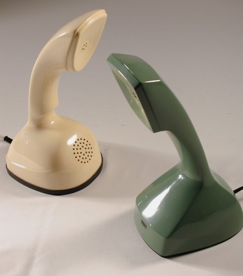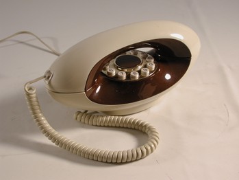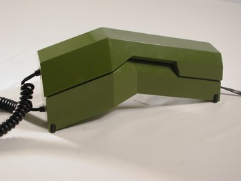 70erjahre ericofon modell mit impulswahl, verfügbar in weiss, dunkelgrün (oben) und orange