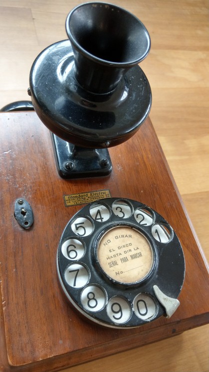 wandstation telefon standard electric vor 1920 mit wählscheibe. holzgehäuse und metall. optisch guter zustand - über die funktionsfähigkeit wage ich keine aussage., aber komplett.