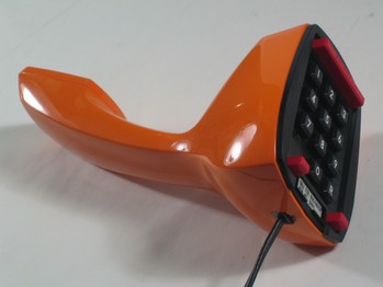 ericofon orange standtelefon mit tasten im fuss um 1970