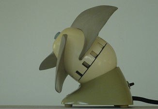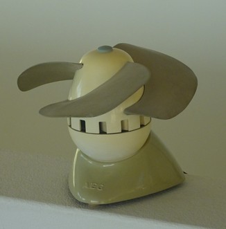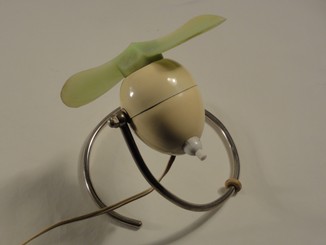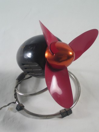 niedlicher kult-venti von aeg um 1950, drehbare rotorkugel mit drei breiten gummiflügeln auf kunststoffstand, lässt sich auch an die wand hängen