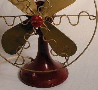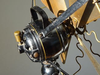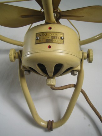 rotorblätter und schutzblätter aus messing, körper aus eisen, um 90 grad gegen hinten kippbar - lässt sich auch an die wand hängen, 3 geschwindigkeitsstufen